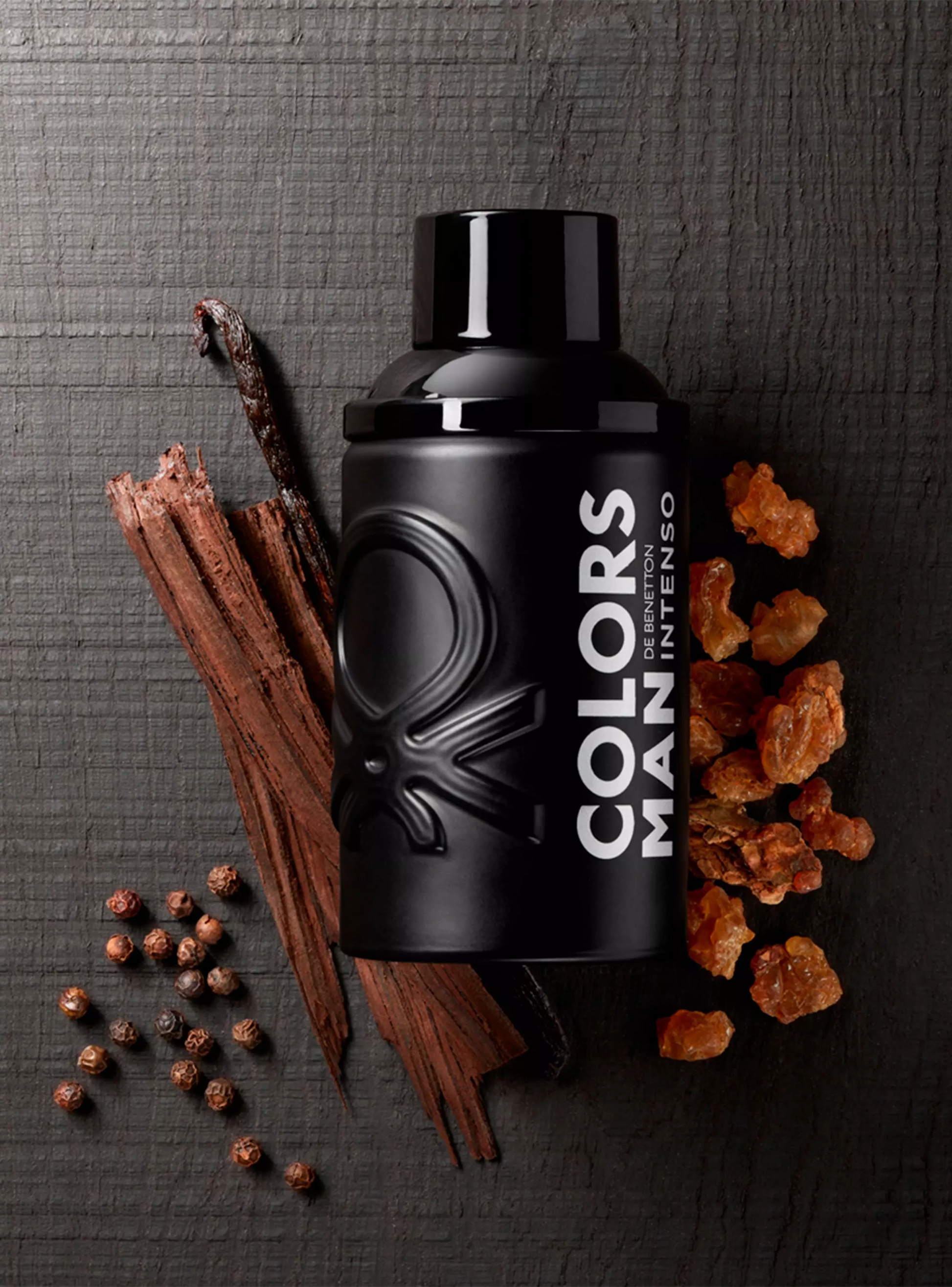 enetton Colors Man Black Intenso es una fragancia para hombre que juega con un carácter profundo y sofisticado, dentro de la familia olfativa oriental amaderada.